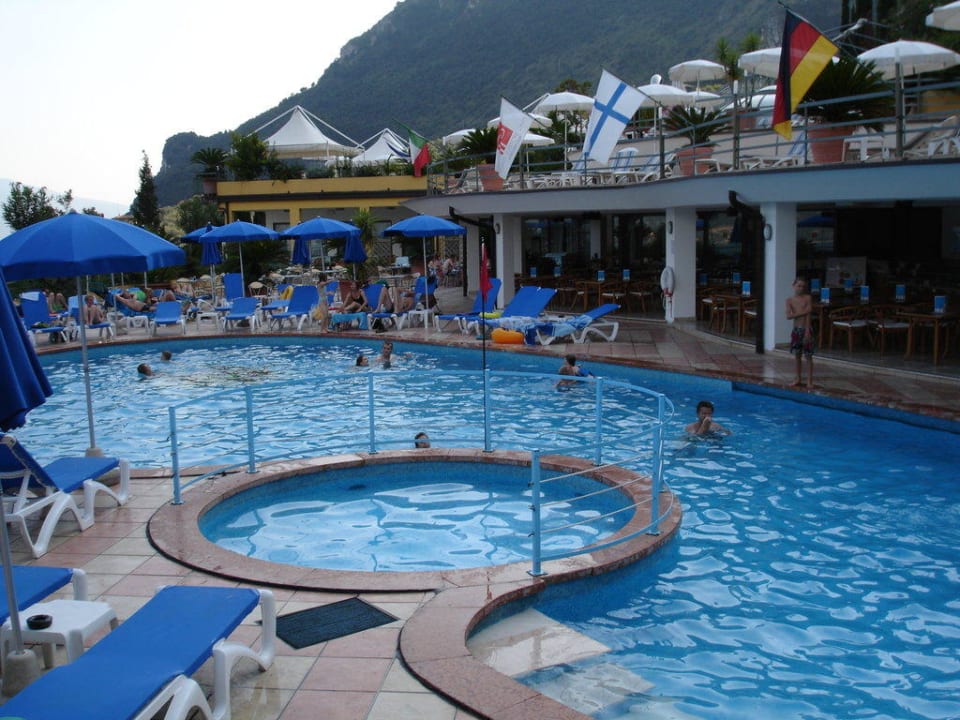 Der obere (warme) Pool mit PoolbarHier war immer viel los. In der Poolbar konnte man sich Essen und Trinken bestellen, die Tea-Time mit Keksen, Kaffe oder heißer Schokolade (Automat) fand dort statt und auch die Abendunterhaltung konnte man hier genießen.