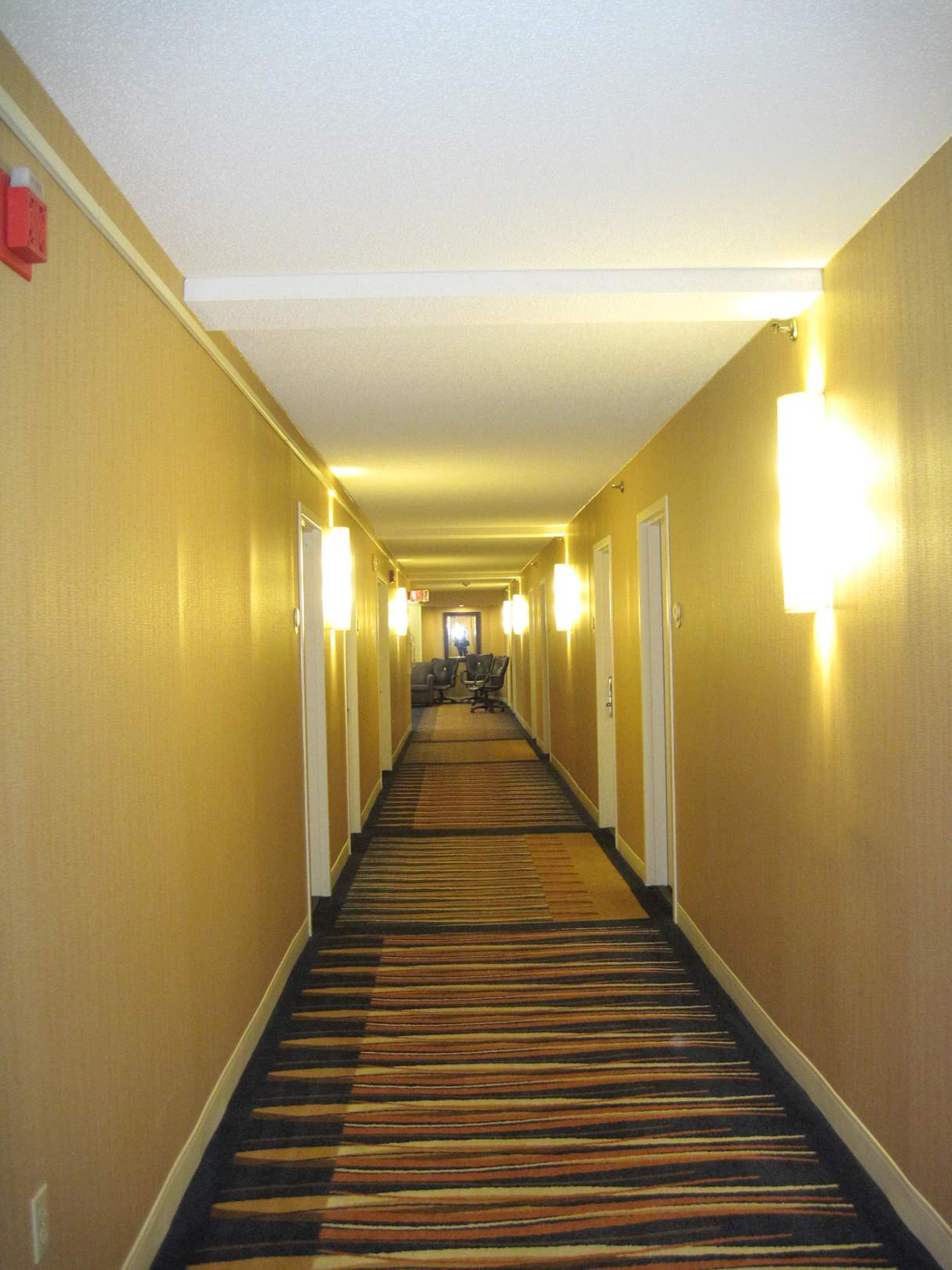 Der Hotelflur mit Zimmereingängen