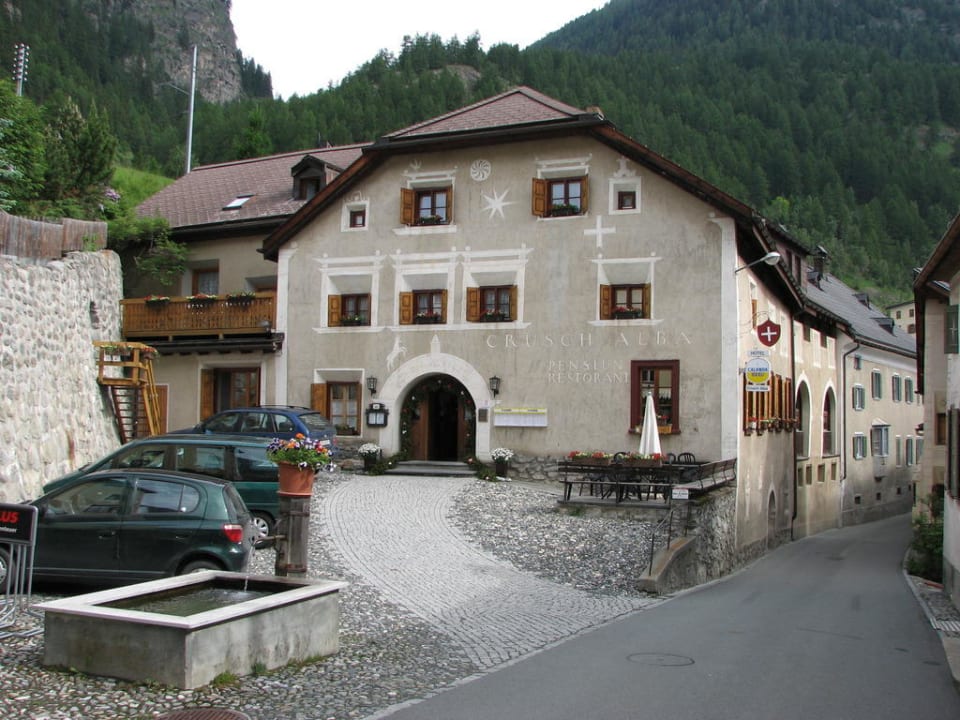 Das Hotel befindet sich in einem über 300 Jahre alten Engadinerhaus. Auch im Innern wurde der Engadinerstil konsequent beibehalten.