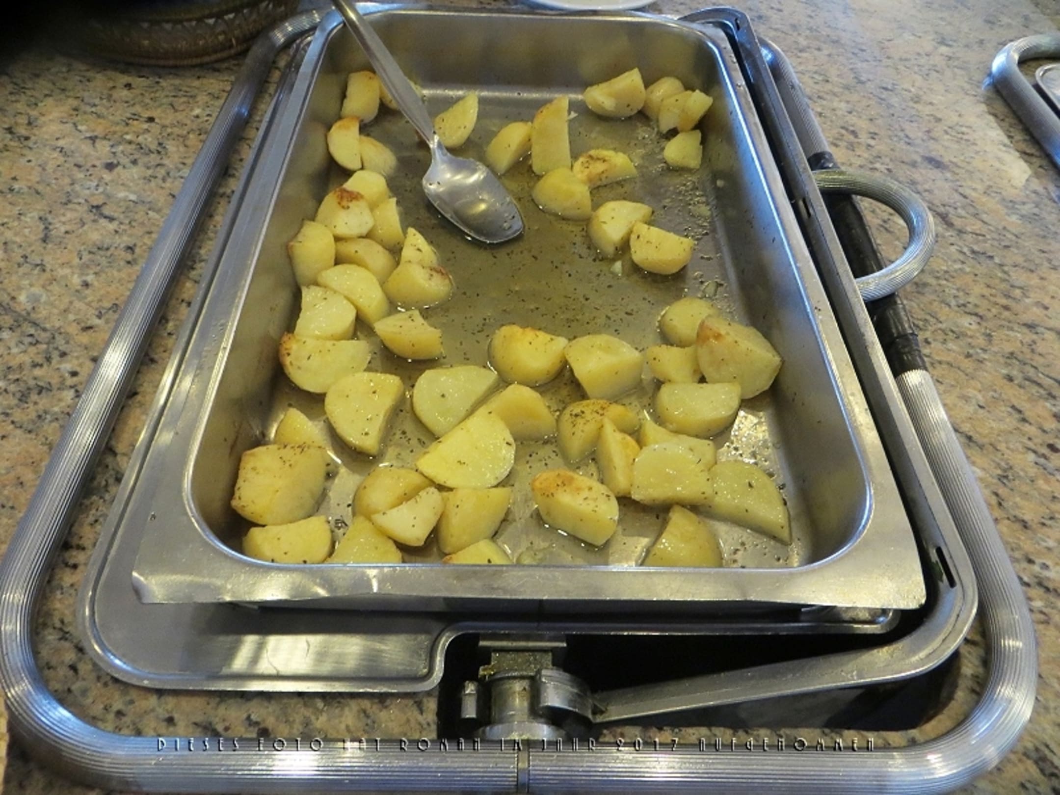 Ein Teil des reichhaltigen Frühstücksbüffets, hier eine Schale mit gebratenen Kartoffeln.