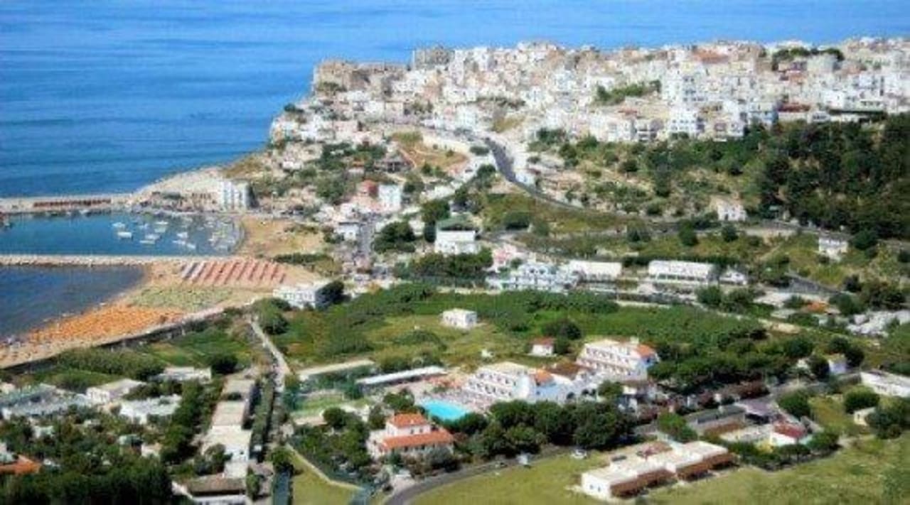 Vista Peschici, porto, spiaggia e Hotel D'Amato