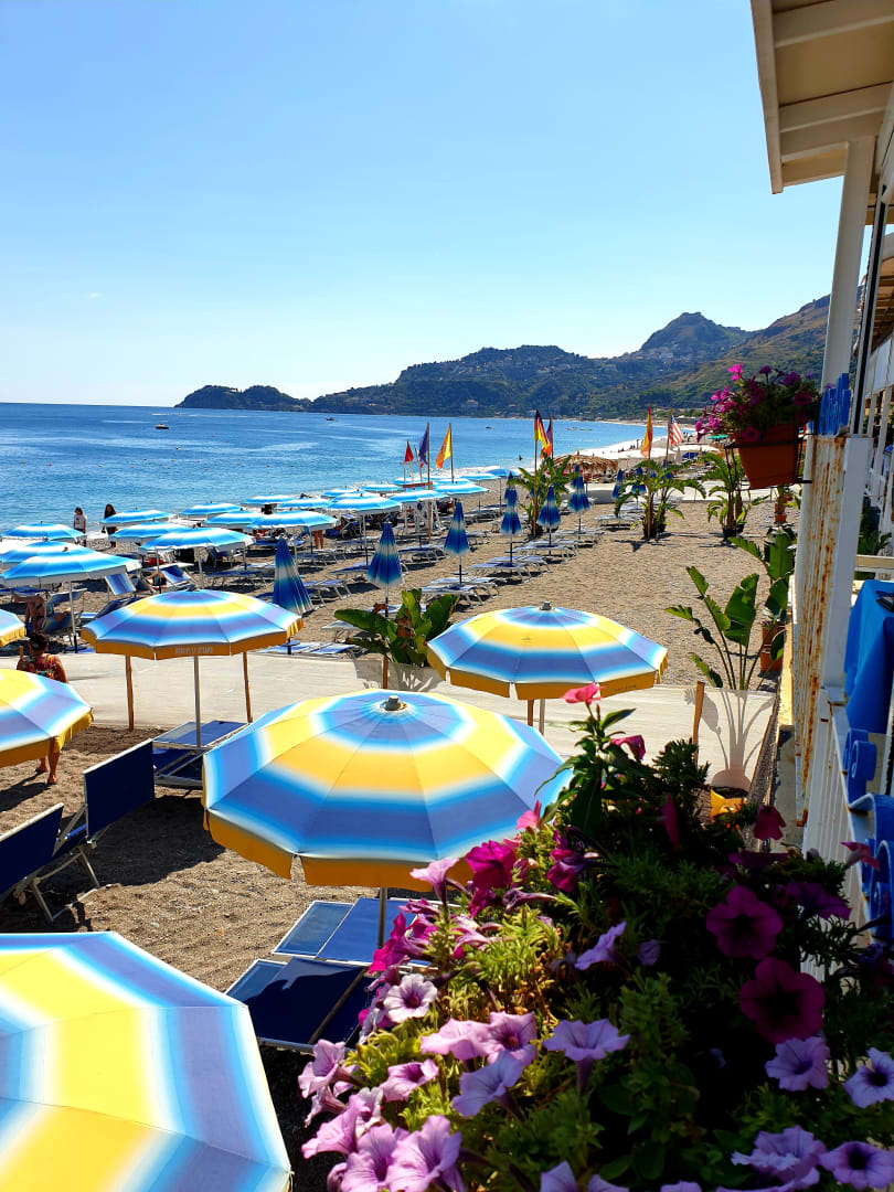 Strandrestaurant mit Blick nach Taormina
