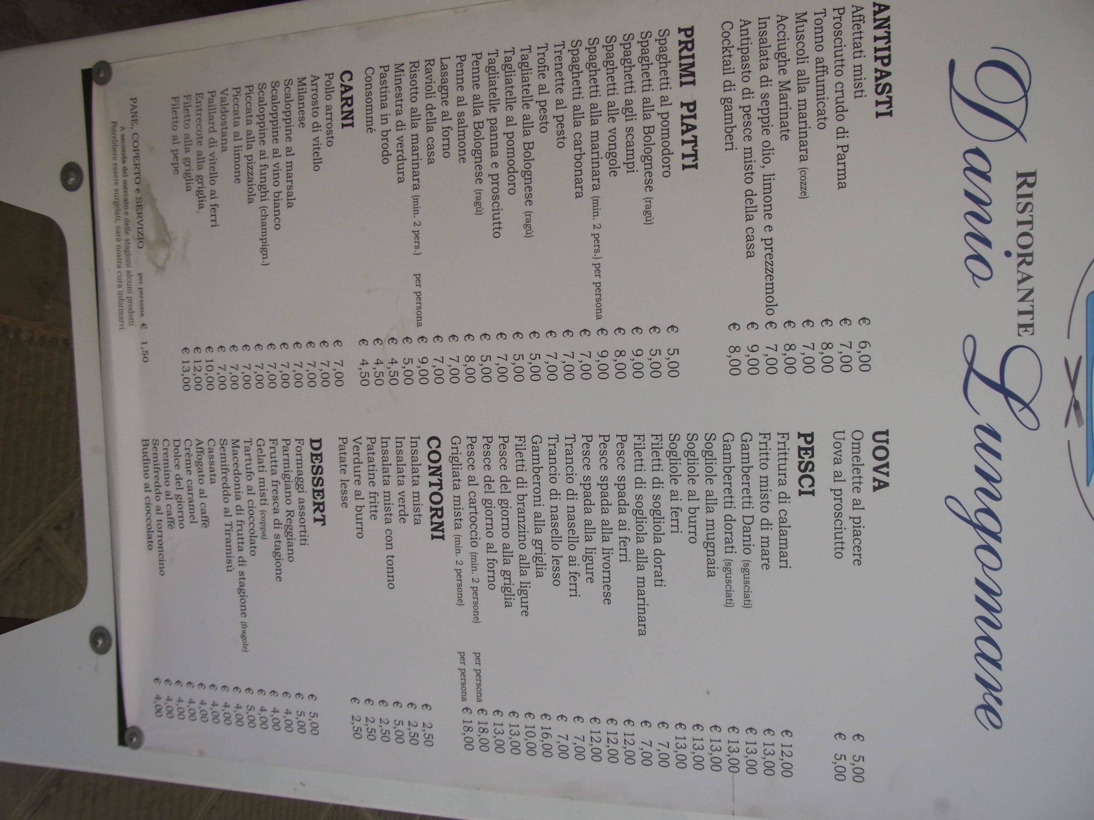 Normale Speisekarte