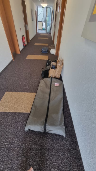 unser Gepäck im Flur, da Zimmer nicht bezogen werden konnten und wir mit 12 Personen in 1 Zimmer waren