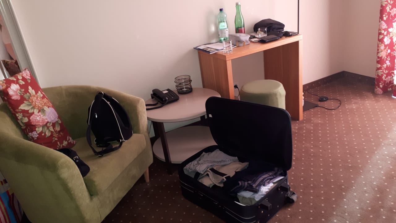 ZimmerDZ im 4 Sterne Hotel !!! Keine Kofferablage, kein zweiter Sessel, kein Eiskasten, MW strand warm am Tisch !!!