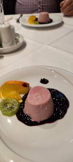 Nachtisch, Beerenmouse auf Heidelbeer Spiegel