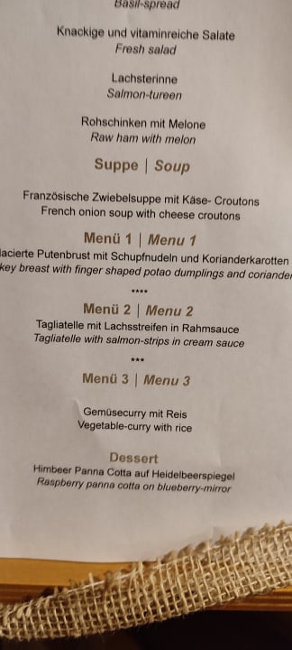 Täglich wechselnde Speisekarte