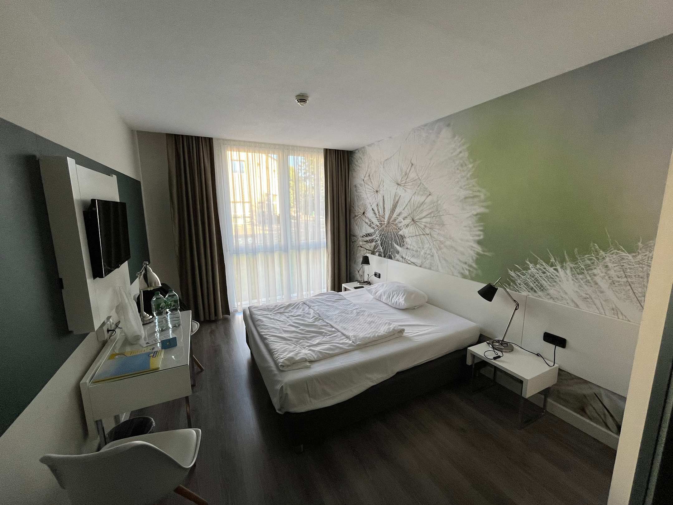 Klassische Ausstattung des Zimmer. Recht Hell und gemütlich.