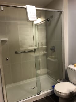 eines der renovierten, modernen Bäder