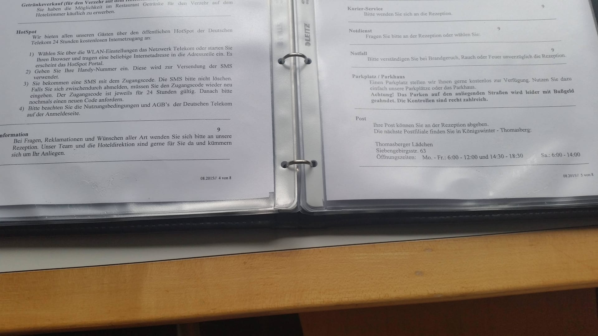 2 klebrige Seiten in Infokladde auf dem Zimmer