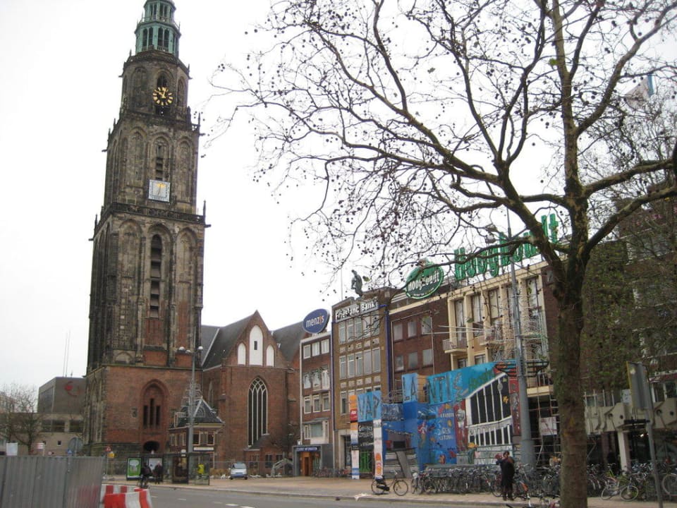 Blick vom Eingang des Hotels zur Martinikirche