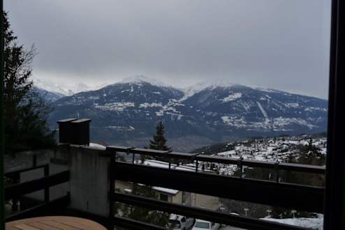 Herrlicher Blick auf die Walliser Berge vom BalkonHier gemütlich auf dem Balkon sitzen und die Aussicht auf Crans und die Berge genießen.