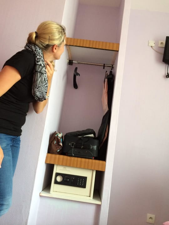 Das sollte der Schrank für zwei Personen sein. 3 Bügel gab es. Der Tresor funktionierte nicht.