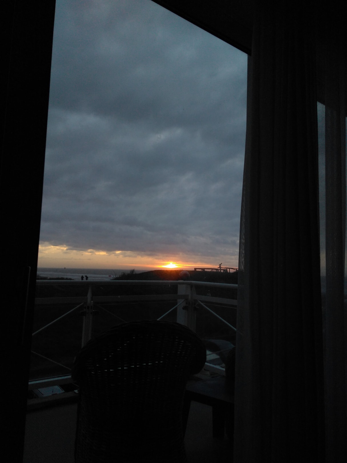 Blick vom Bett über den Balkon aufs Meer