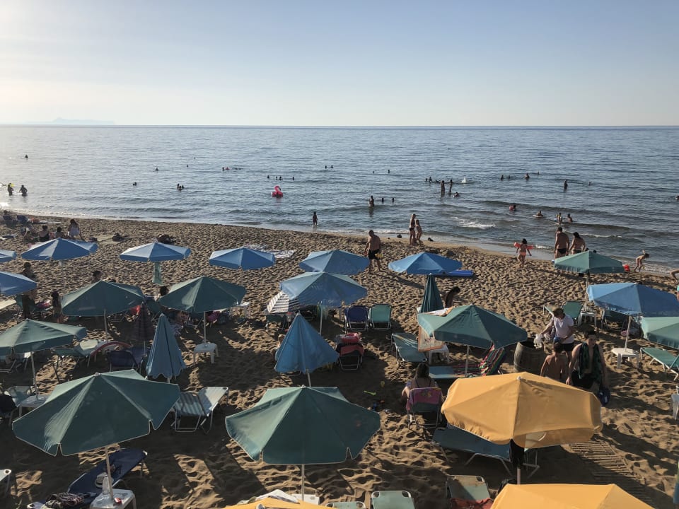 Kleiner, feiner Sandstrand. Sauber und immer Liegen vorhanden.