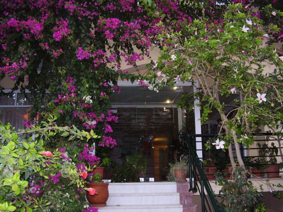 Der Hoteleingang - ein Blütenmeer