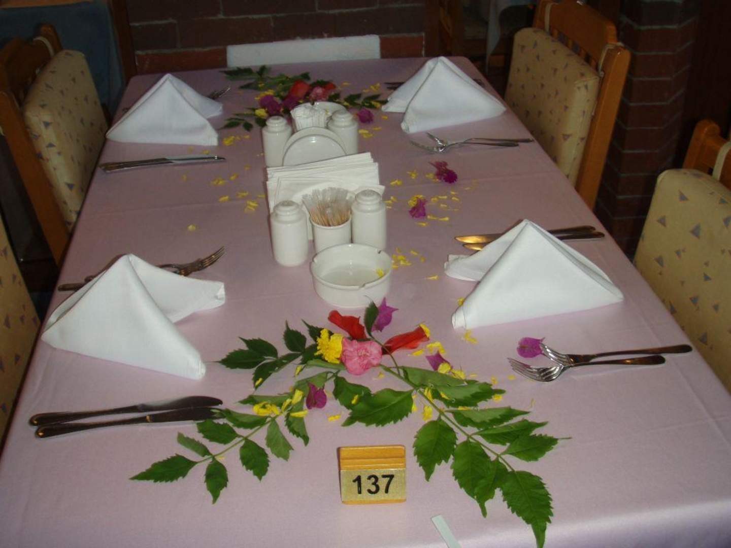 Am Abend vor der Abreise wird der Tisch mit Blumen geschmückt