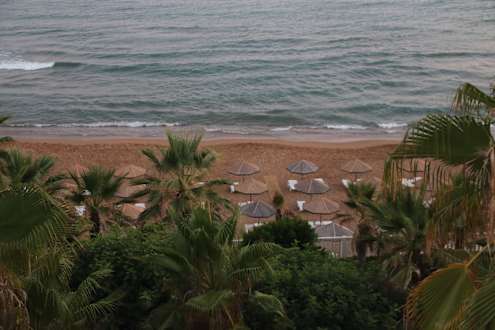 Bis ca. 9.30 Uhr konnten wir noch immer 4 Liegen um einen Sonnenschirm finden. Wir hatten noch 3 kleine Sonnenschirme mitgebracht, die einfach in den Sand gesteckt werden konnten. So hatten wir bis zum Nachmittag Schatten.