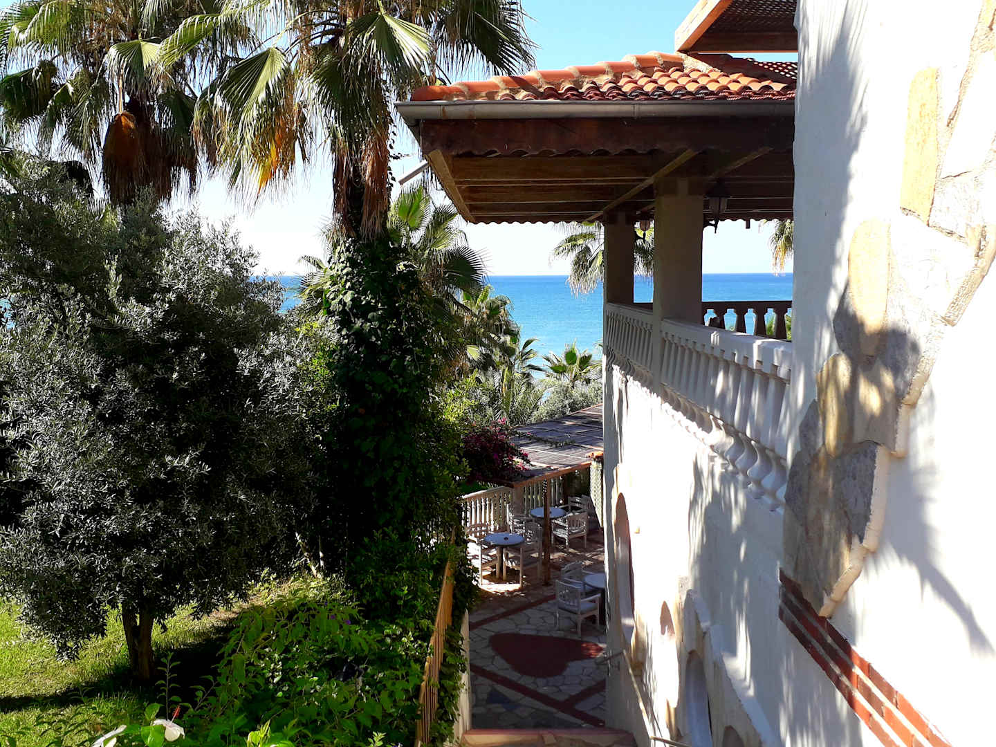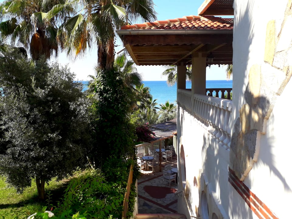 Der Weg zum Strand, unten die Strandbar ...