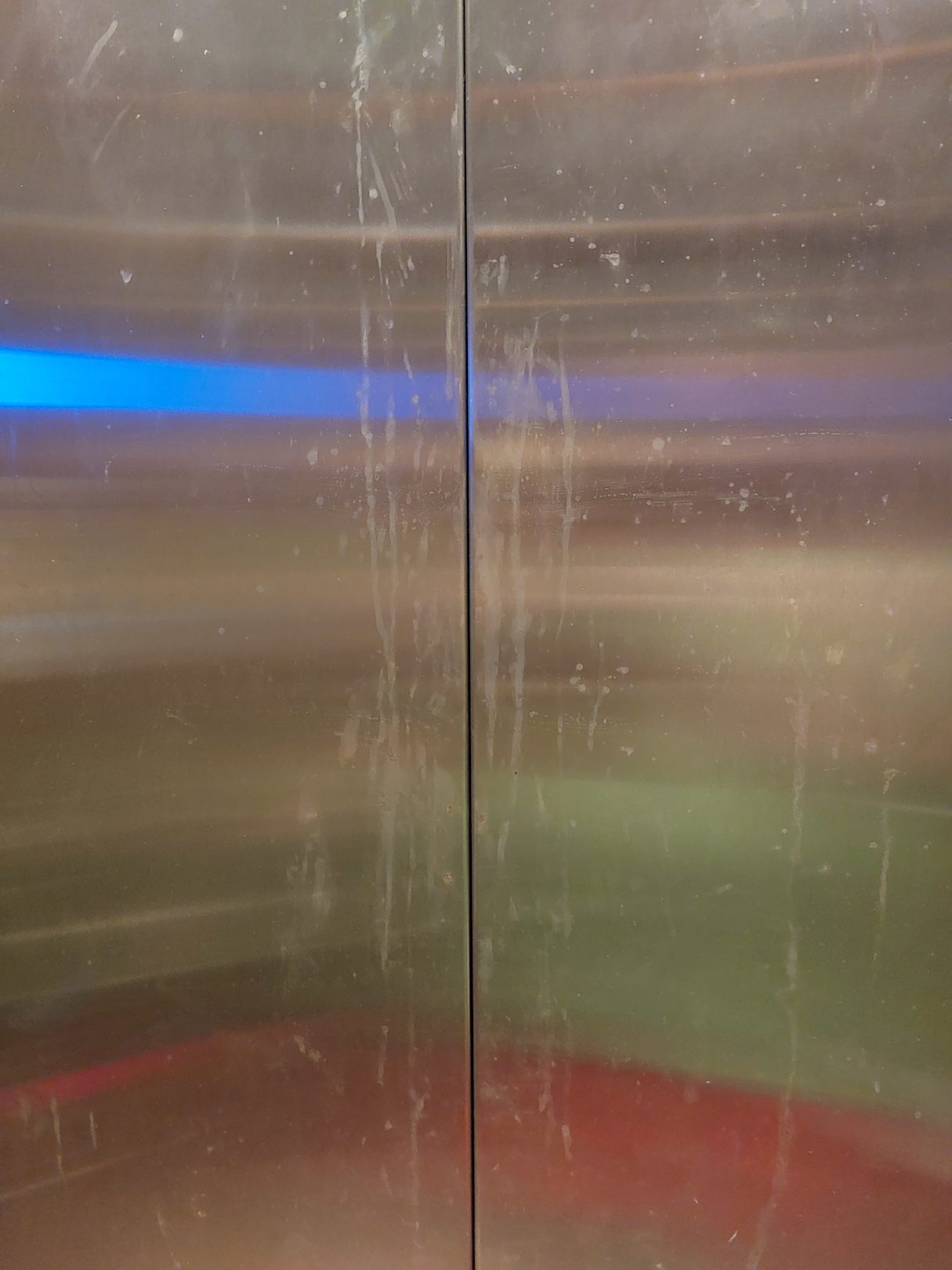 Ein Fahrstuhl mit der Innentür, ebenfalls nicht gereinigt.