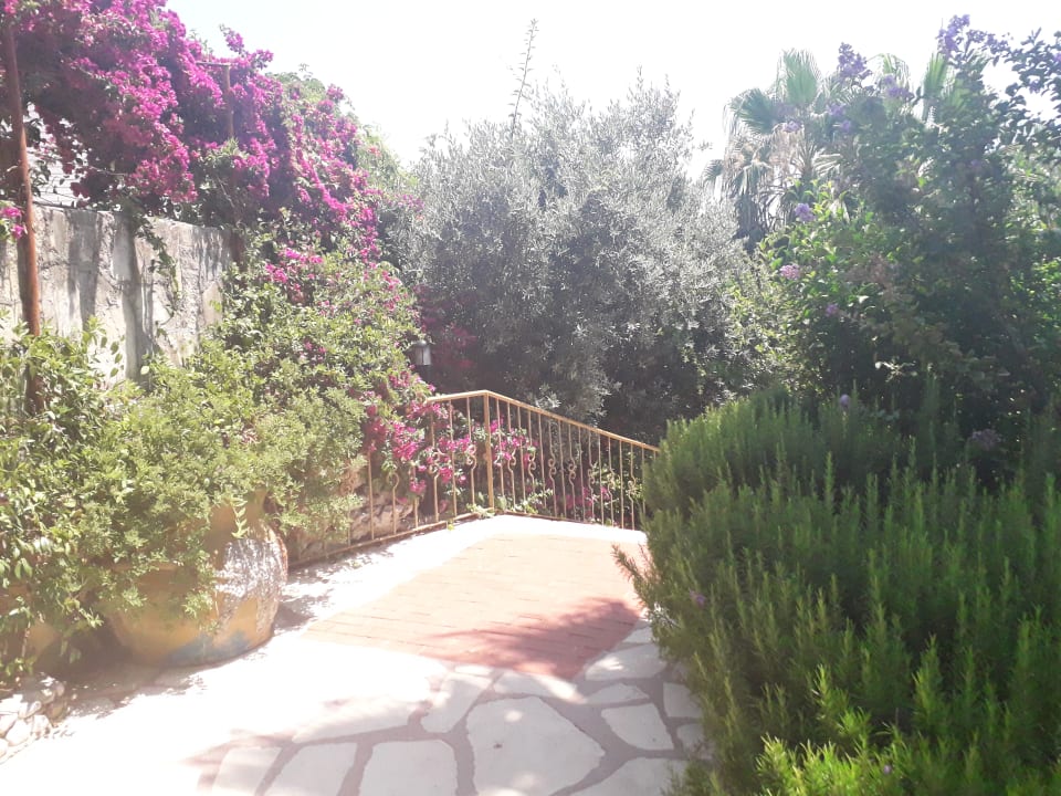 GartenSchnappschuss von der wunderschönen und sehr gepflegten Anlage, hier die Treppe runter zum Restaurant ...