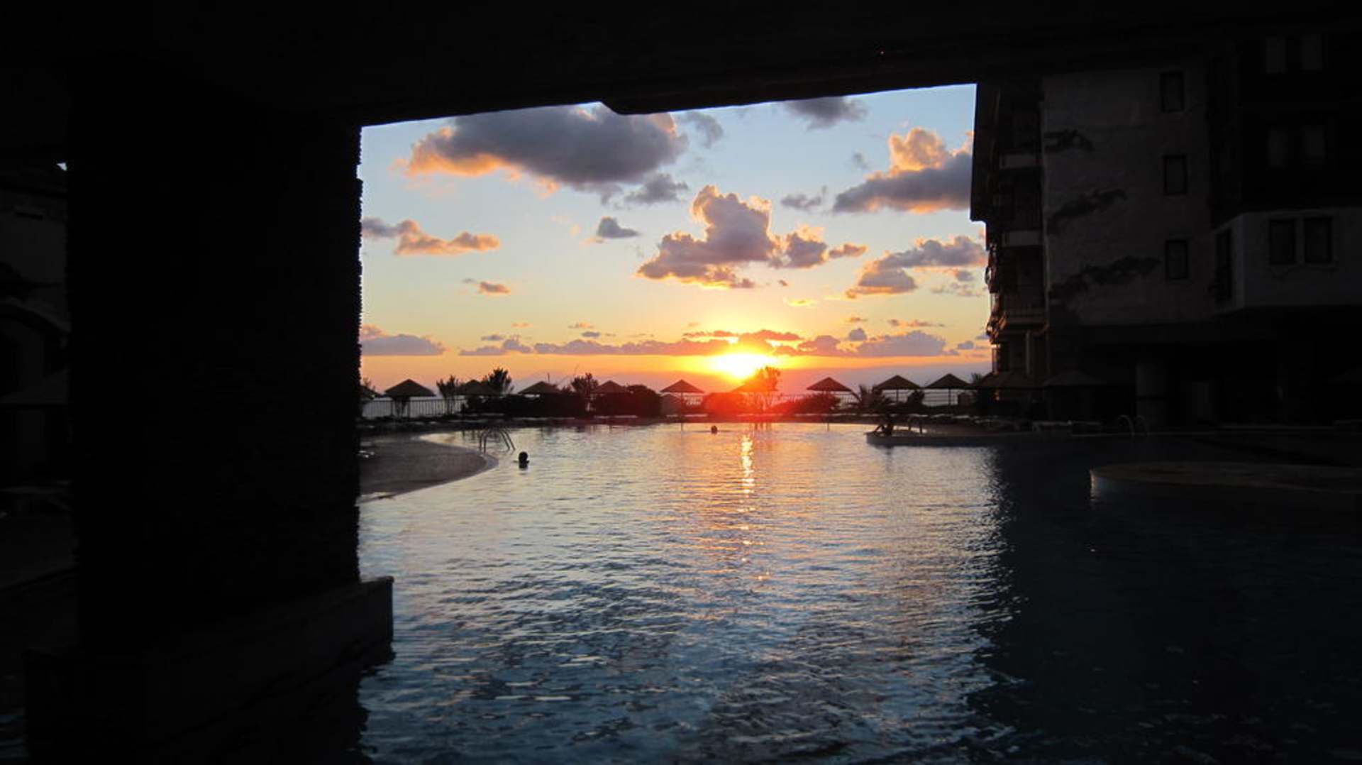 Bild am Pool bei Sonnenuntergang