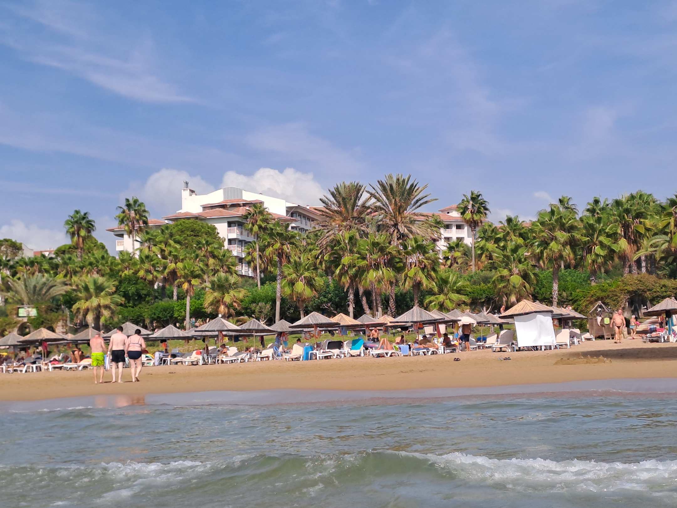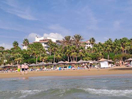 Blick auf die Hotelanlage vom Meer