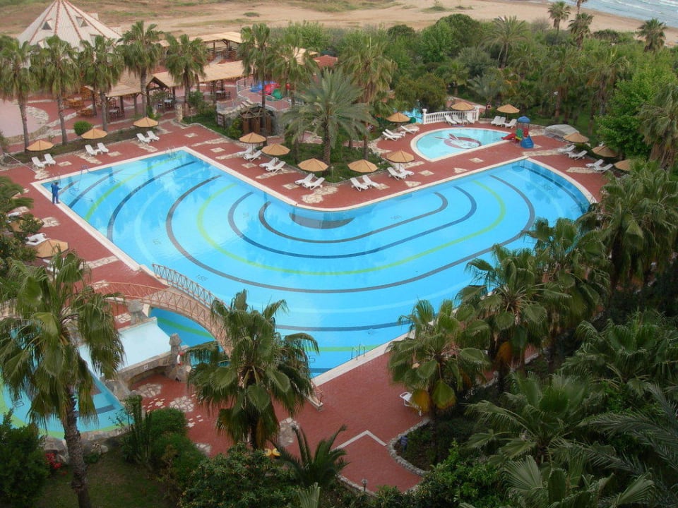 Blick vom Zimmer auf den Pool