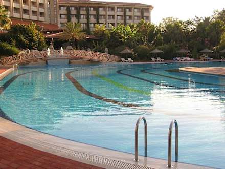 Blick vom Pool zum Hotel, rechte Seite