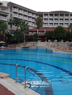 Pool mit Blick auf das Hotel