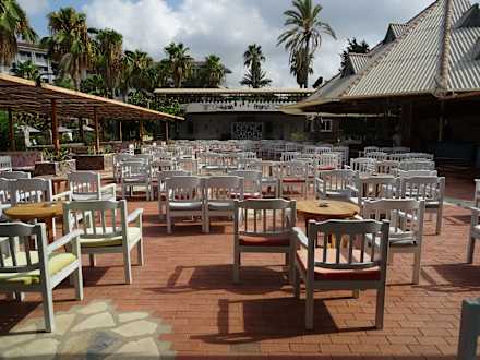 Die Poolbar mit der Bühne im Hintergrund