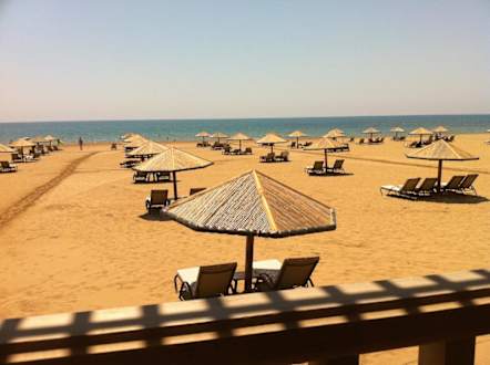 Die Wege zum Wasser werden permanent nass gemacht, damit man sich die Füße nicht verbrennt.