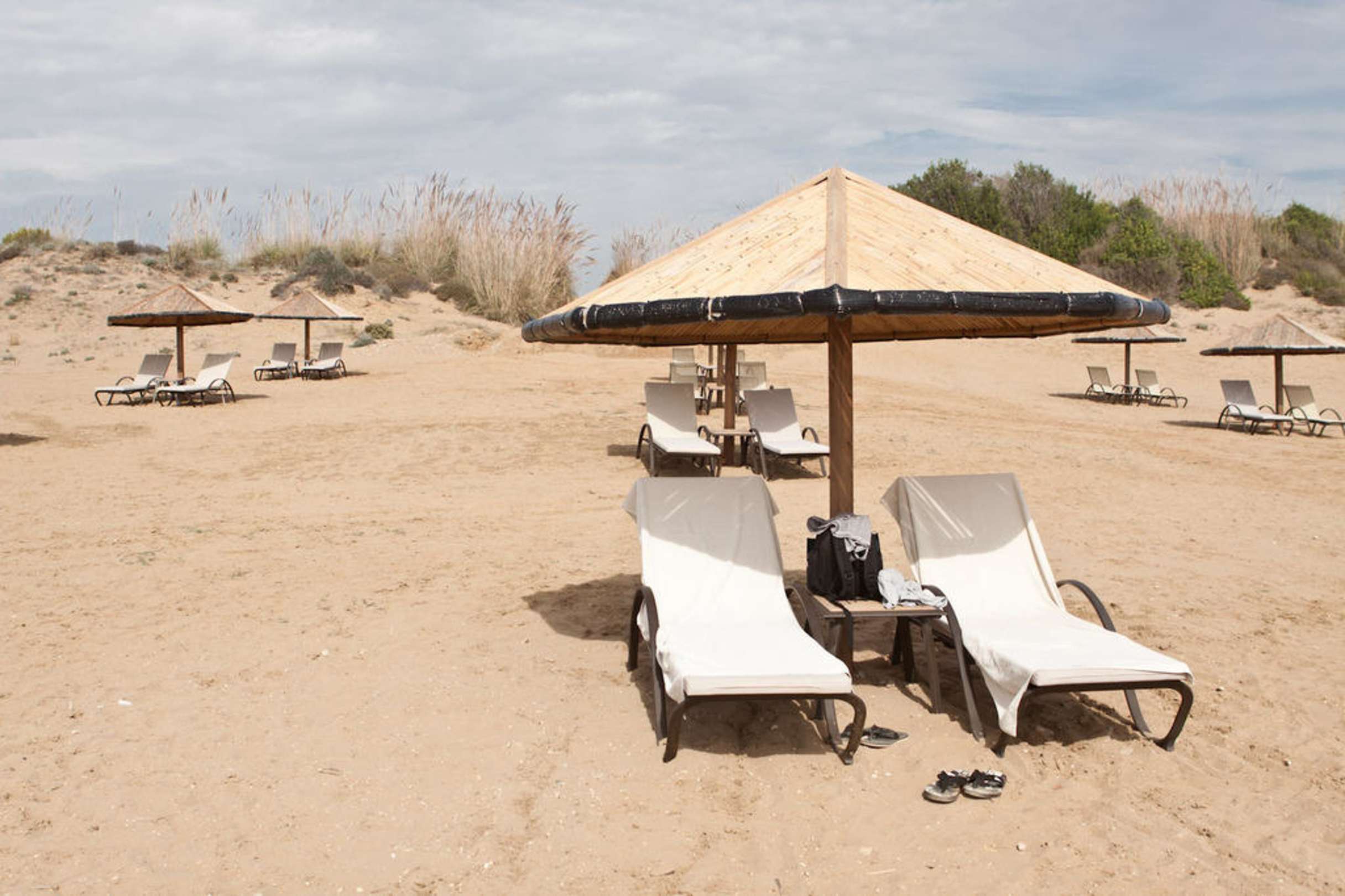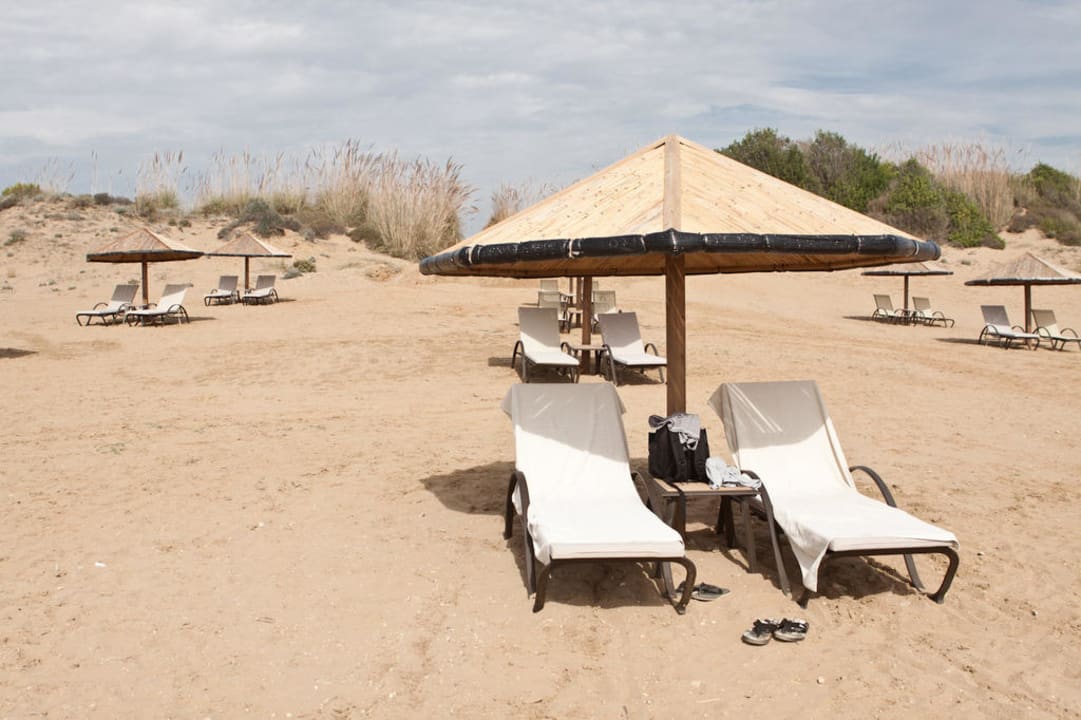 Die Liegen am Strand sind sehr grosszügig angeordnet.