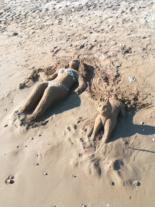 Sandfigur am Strand.