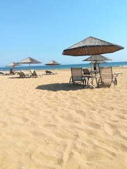 Viel Abstand zwischen den Sonnenschirmen.