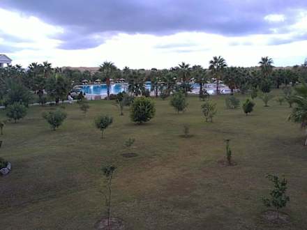 Garten und Pool aus dem Zimmer fotografiert