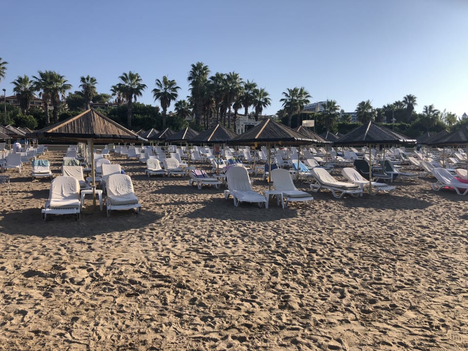StrandOffiziell ist es verboten die Liegen zu reservieren. Auf dem Bild ist es etwa 08:00 Uhr. Alle sind beim Frühstück, kein Mensch am Strand. Es sind jedoch die ersten drei Reihen SCHON KOMPLETT BESETZT! Da freut man sich direkt auf den Strand. NICHT.