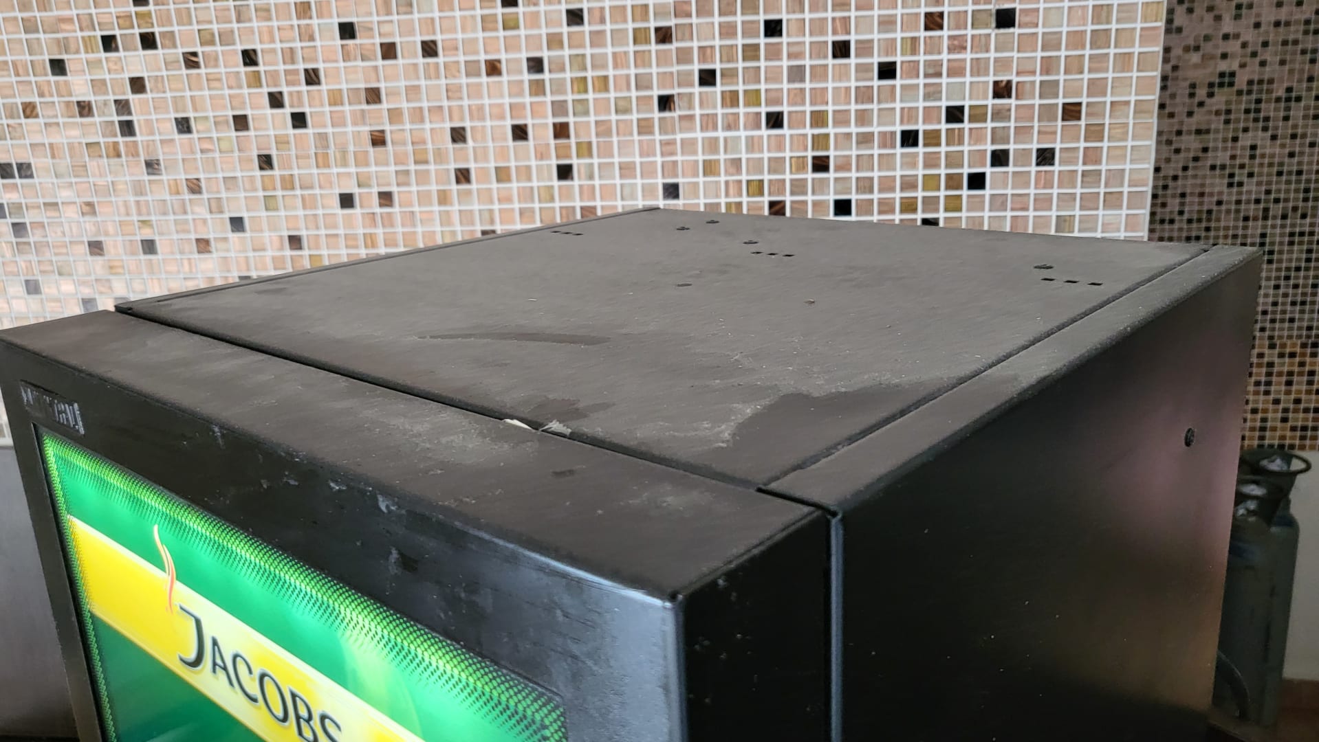Dreck auf der öffentlich zugänglichen Kaffeemaschine an der Rezeption