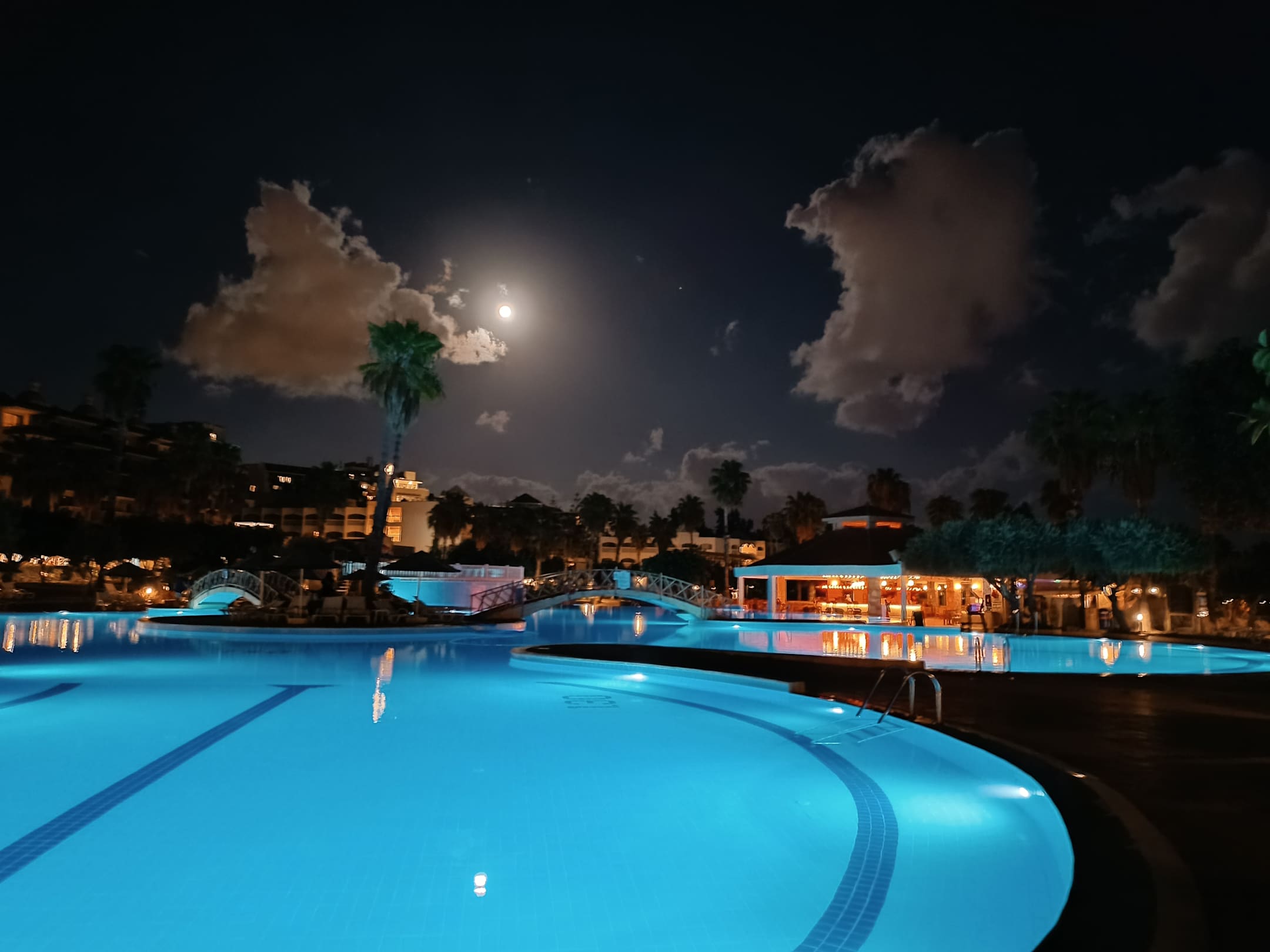 Der Pool am Abend mit Blick auf die Kum Bar