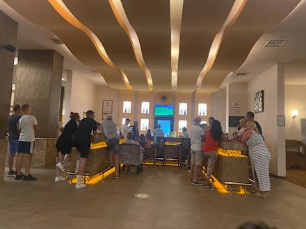 Frauen EM auf Mini-TV zu sehen. Kein Personal für Getränke vorhanden