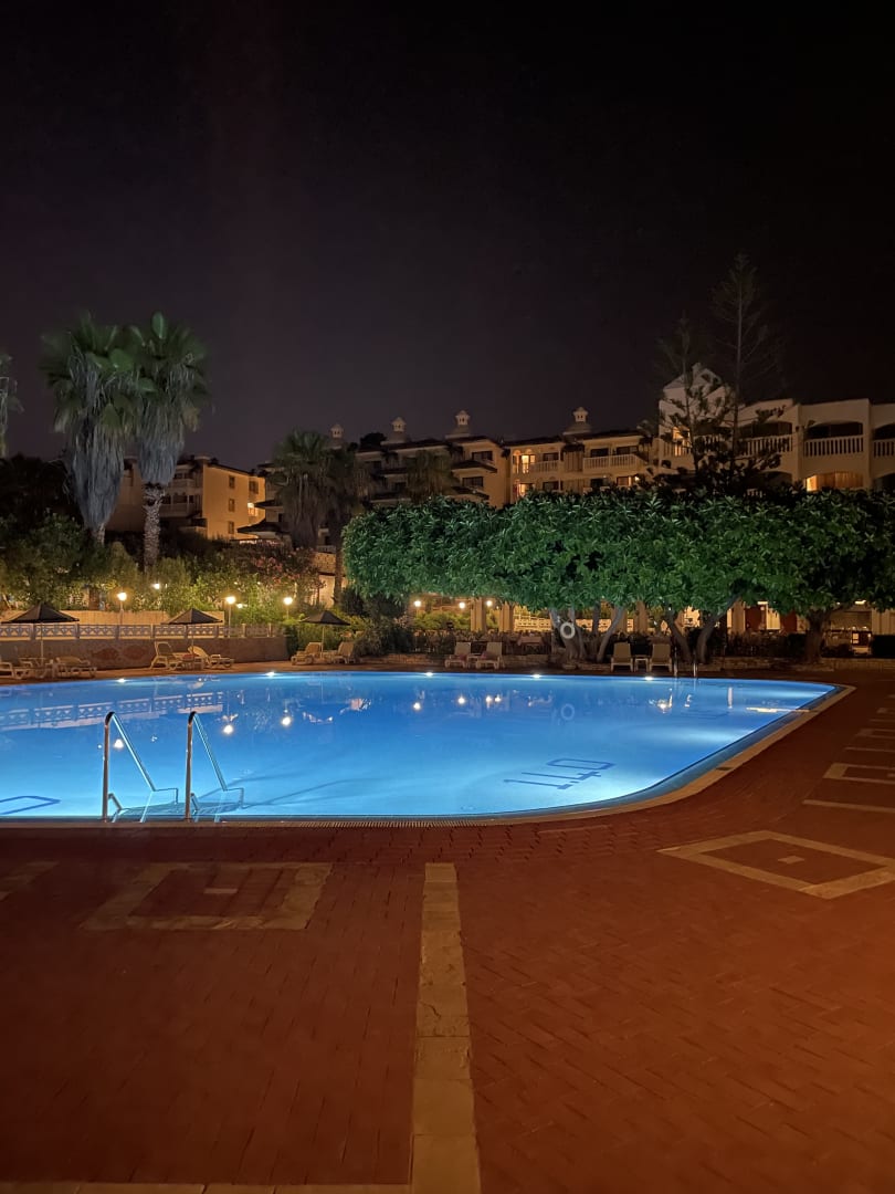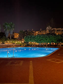 Pool am Abend toll beleuchtet.