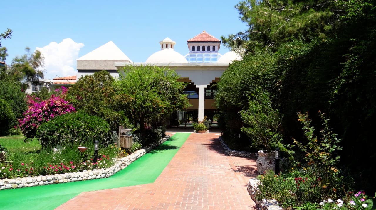 Der Hoteleingang mit wunderschönem Garten