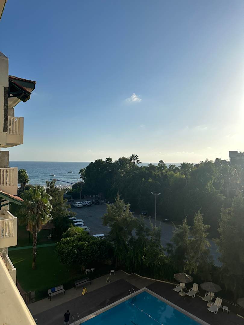 Seitlicher Meerblick aus dem Zimmer.