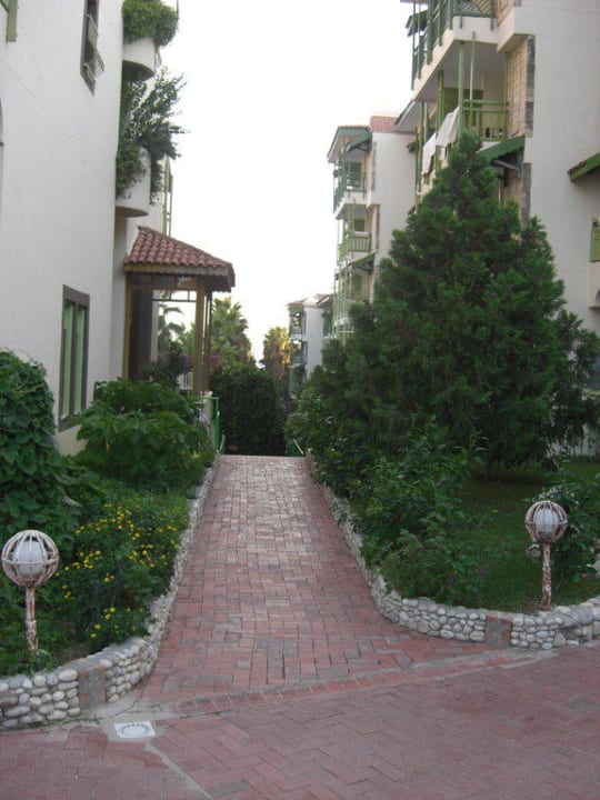 Weg durch die Häuser zu Pool und Strand