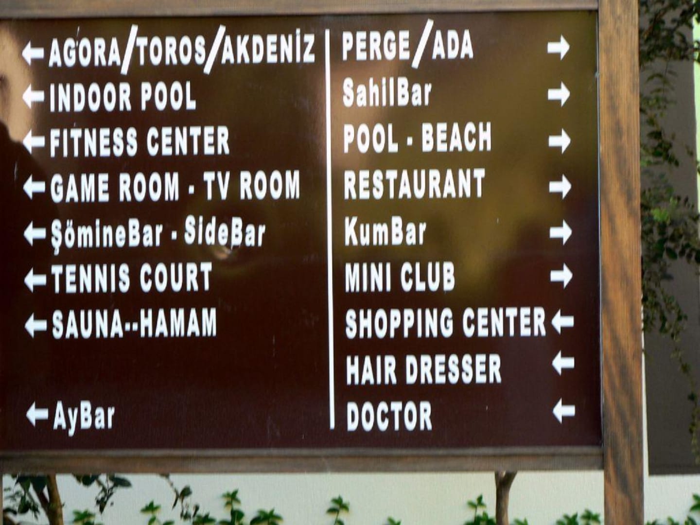 Wegweiser in Hotelanlage