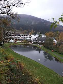 Hotel vom Teich aus gesehen