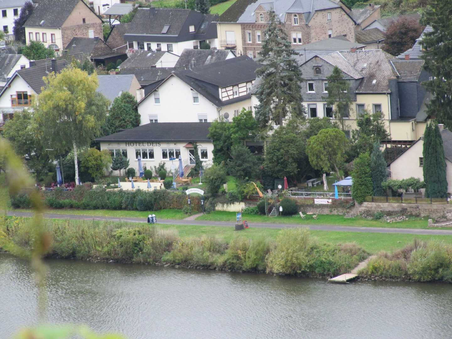 Hotel Deis vom Weinberg am gegenüberliegenden Ufer der Mosel