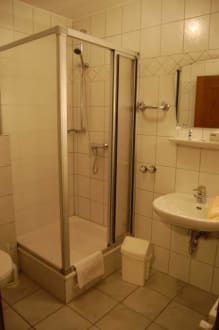 Badezimmermit Dusche. Warmwasser war sofort da, obwohl ich Eine der Ersten (oder Einzigen?) war, die an diesem Morgen duschten.