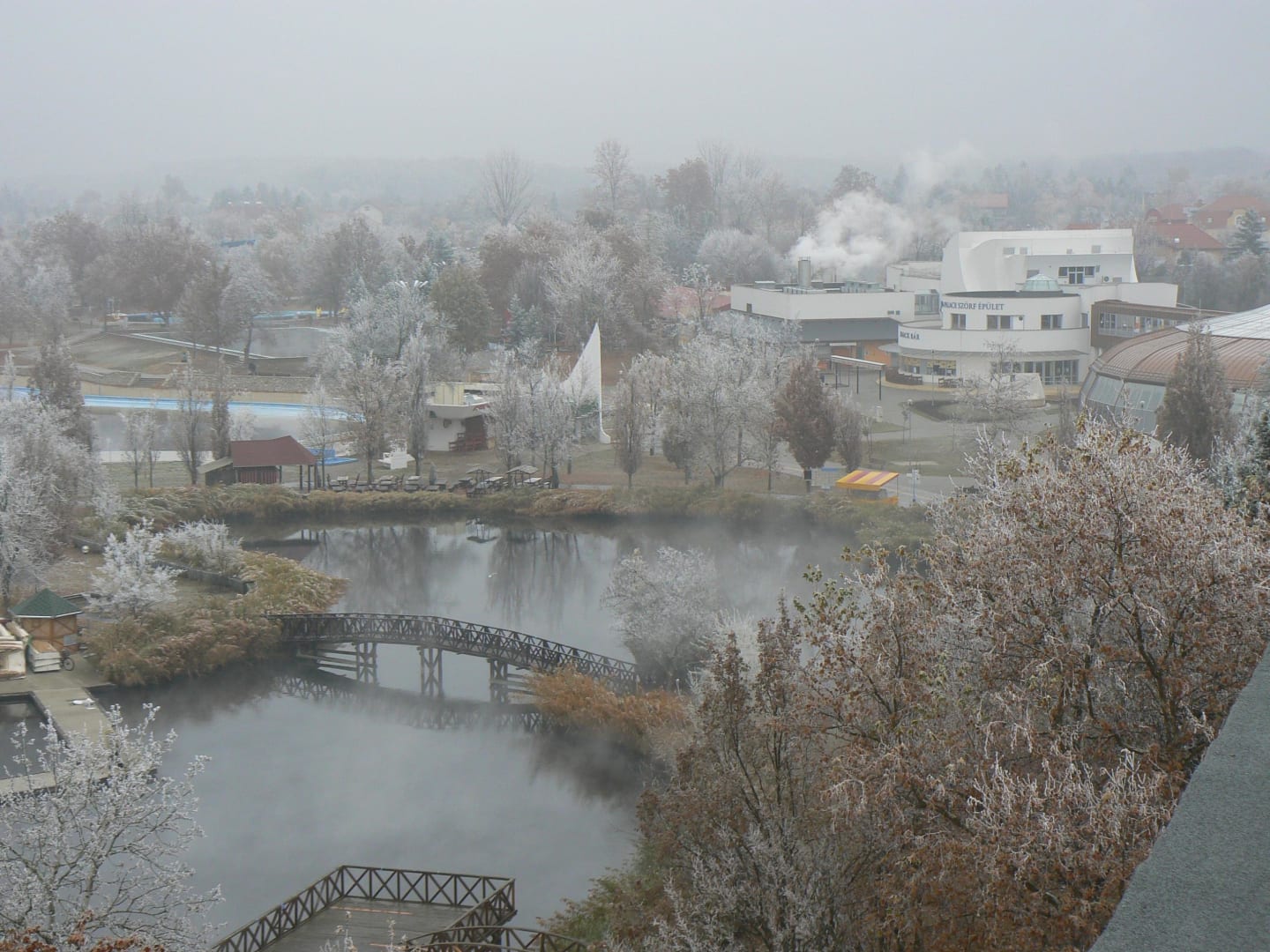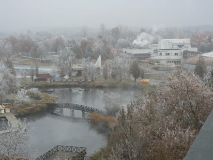 Winter-Blick vom Hotel zur Thermal-Freibadanlage