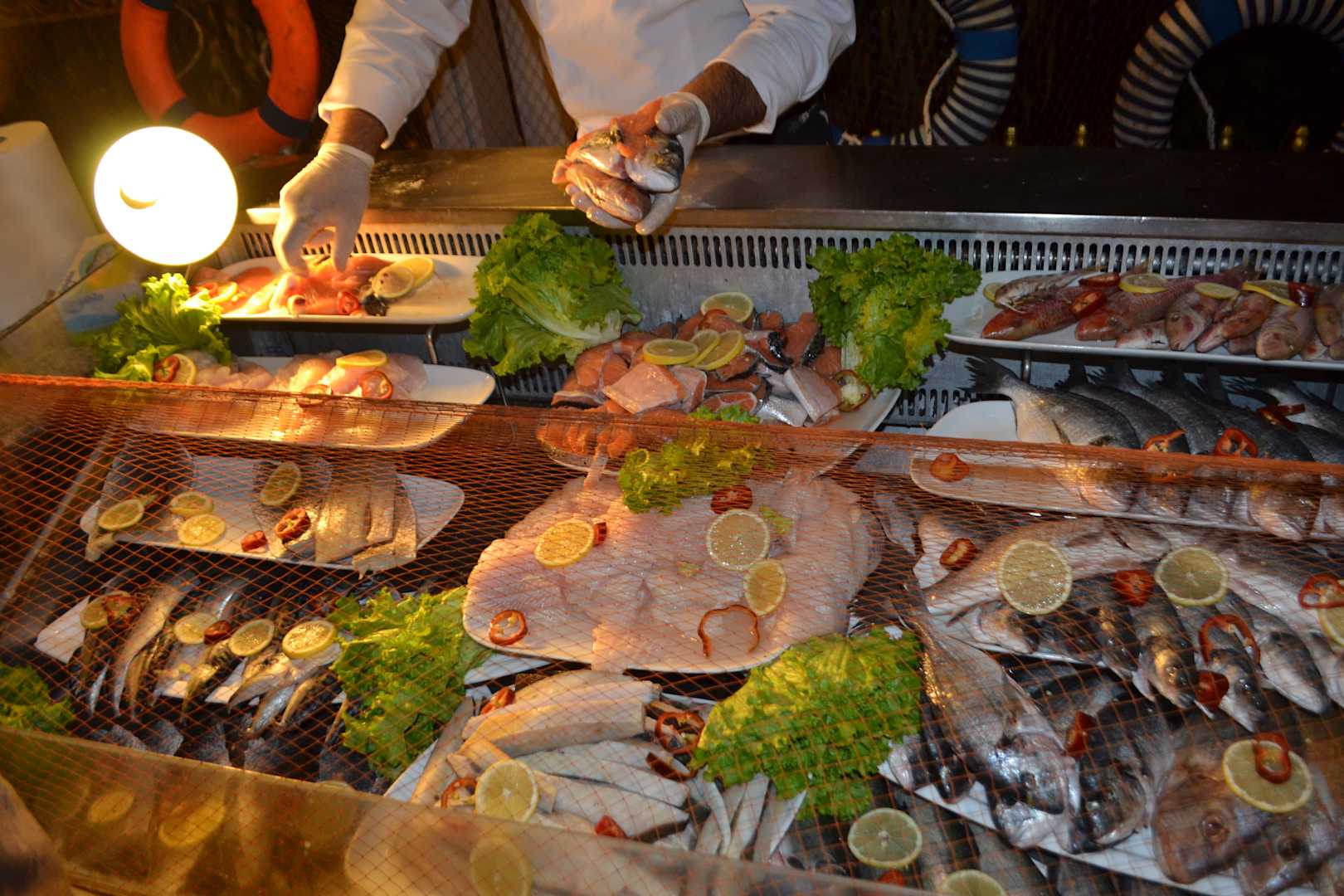 Jeden Tag frischer Fisch, aussuchen, grillen lassen, genießen!